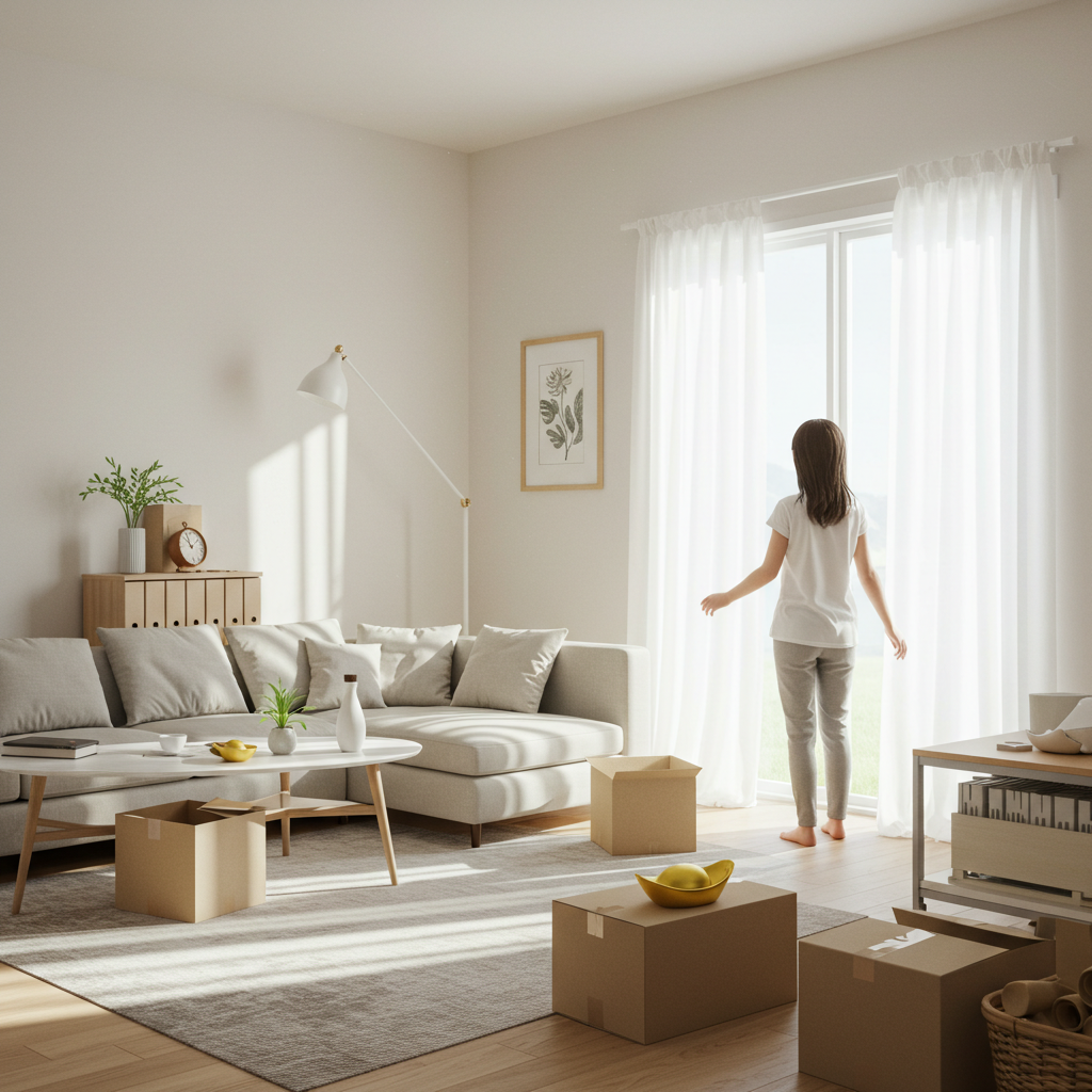 盛り塩や水晶などで浄化用品を準備し、新居での空間浄化に備えます。また、東側の窓を有効活用できるよう、カーテンや家具の配置を検討します。